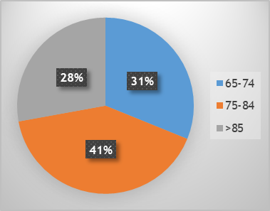 De acuerdo con las respuestas obtenidas, la mayor proporción de adultos mayores encuestados pertenece al grupo de edad de 75 a 84 años, representando el 41 % de la población estudiada (figura 1). Le siguen los grupos de 65 a 74 años con un 31 %, y los mayores de 85 años con un 28 %.