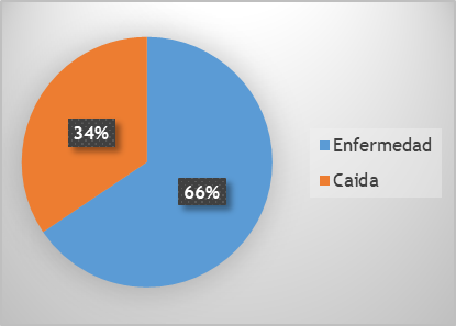 De acuerdo con los datos recopilados, la inmovilidad en la población de adultos mayores estudiada se debe principalmente a enfermedades crónicas relacionadas con la edad, representando el 66 % de los casos (figura 5). Estas enfermedades incluyen condiciones degenerativas y crónicas que afectan el sistema musculoesquelético, cardiovascular o neurológico. Por otro lado, el 34 % de los participantes identificó como causa de su inmovilidad caídas o accidentes que dejaron secuelas físicas que limitan su movilidad.