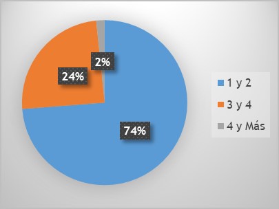 Según los datos recopilados, el 74 % de los adultos mayores consume entre 1 y 2 medicamentos al día, generalmente asociados con el tratamiento de 1 o 2 enfermedades (figura 10). Un 24 % toma entre 3 y 4 medicamentos diarios, lo que refleja tratamientos más complejos debido a la coexistencia de múltiples patologías. Por otro lado, solo un 2 % de la población encuestada consume más de 4 medicamentos diariamente, lo que está relacionado con condiciones crónicas severas y tratamientos de largo plazo.