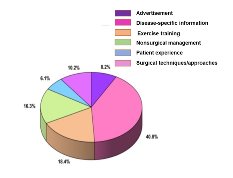 The following content categories were included: exercise instruction (AT treatment and rehabilitation), Patient stories, surgical methods, disease-specific knowledge and procedures and nonsurgical intervention or therapy.