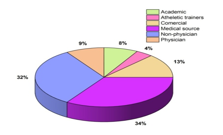 The educational content of the videos must adhere to the trustworthy, peer-reviewed criteria set by the AAOS, which were included in the ATSS of this research, that to be right and maximize the value to the patient. It has been said, individual YouTube videos may have low-quality and insufficient content, but they might be used as a starting point for patients to learn more about their conditions. As indicated in figure 3, films were used to convey disease-specific information (40,8 %), exercise advice (18,4 %), surgical techniques (10,2 %), and nonsurgical treatment (16,3 %) approaches. The most common sources of the films in figure 4 were non-physicians (32 %), such as podiatrists, chiropractors, physiotherapists, and physical therapists, as well as medical sources (34 %), such as health teams.