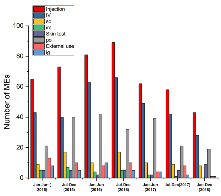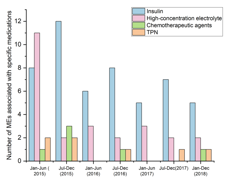 Figure 6. From January 2015 to June 2018, there were four kinds of high-alert drugs that were linked to MEs