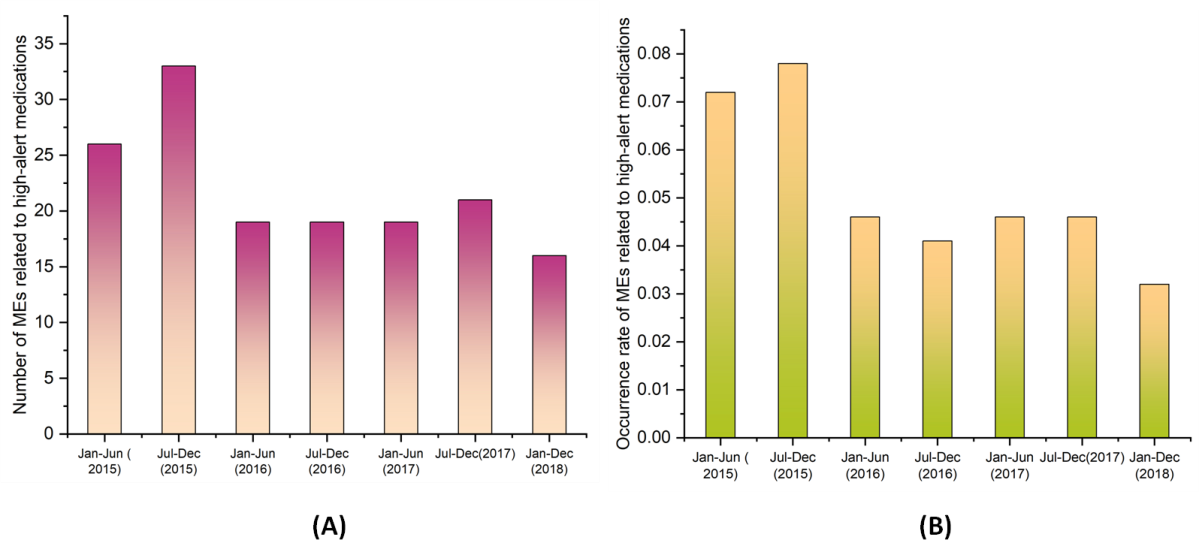 Figure 5. MEs connected with high-alert drugs between January 2015 and June 2018