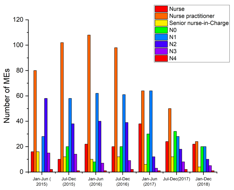 Figure 7. MEs and nurse certification between January 2015 and June 2018