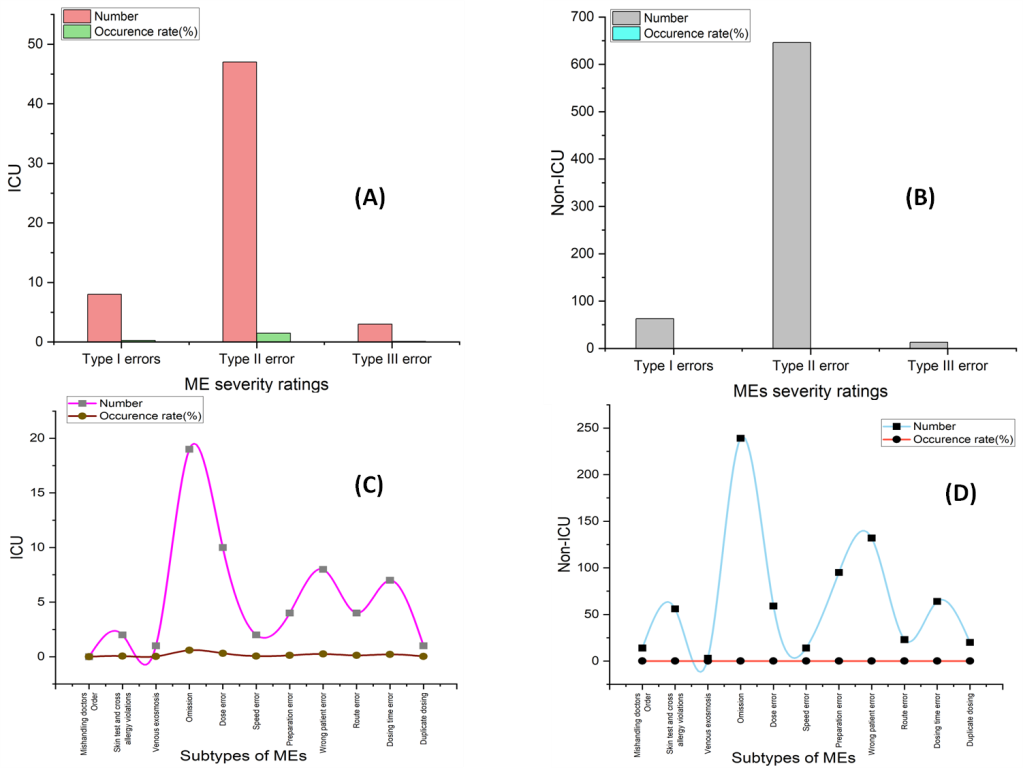 The result metrics consisted of the number of MEs made by nurses, the frequency of MEs, the number of MEs connected with high-alert medications, the frequency of MEs associated with high-alert medications, the frequency of absence, the trends of MEs with various seriousness ratings, the management path, the frequency and timing of ME recognition, and the relative proportion of specific ME types.