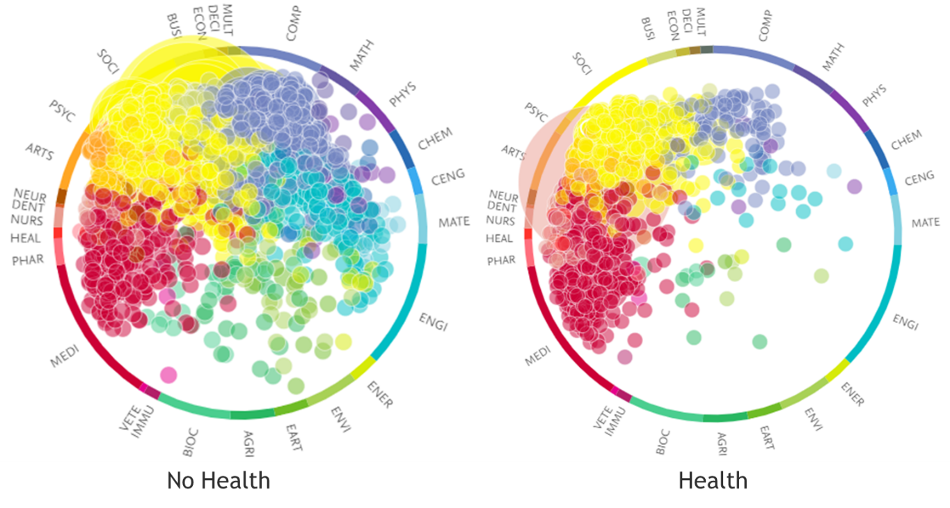 A greater heterogeneity is observed in areas other than health. Figure 2 shows the distribution of topics by categories in Health and Non-Health.