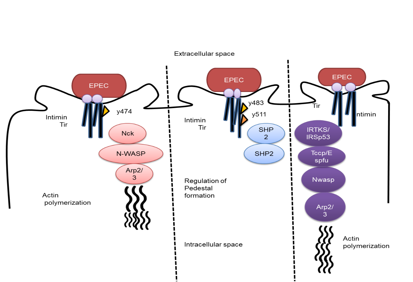 Figure 3. Escherichia coli that is enteropathogenic uses specific polymeric actin routes