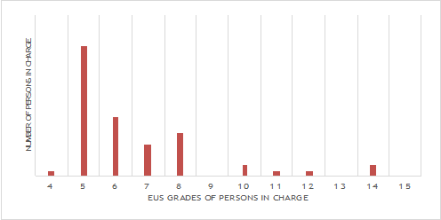 Concerning the grade of the position, which is based on the Single Salary Scale (EUS), they concentrate on 75,00 % between EUS grades 4 and 7. Likewise, 25,00 % is between EUS grades 8 and 14 (figure 2).
