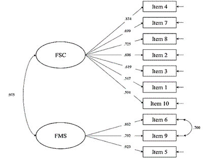 Resultados: la evaluación de FoMOs tuvo una consistencia interna de 0,863 (Alfa de Cronbach). El análisis factorial confirmatorio (CFA) mostró dos factores y buenos indicadores: CFI = 0,991, TLI = 0,987 y un RMSEA de 0,054.