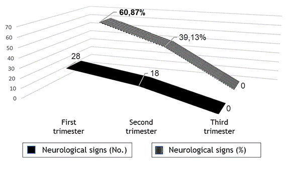 Figure 5. Correlation between the presence of neurological signs and the trimester of pregnancy at the diagnosis of ZIKV infection. Borras-Marfán Pediatric