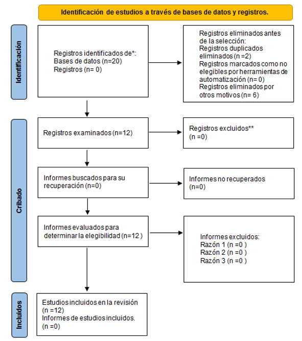 El empleo de esta herramienta dio como resultado que de los 20 artículos elegidos para su revisión y empleo, 8 de los estudios no cumplieron con la información y tiempo específico para el articulo, por ese motivo se eligieron 12 artículos ya que cumplían con los criterios de inclusión para su empleo.