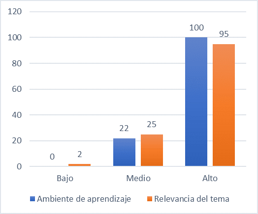 Figura 1. Nivel de relevancia de los contenidos y satisfacción con el ambiente para el aprendizaje