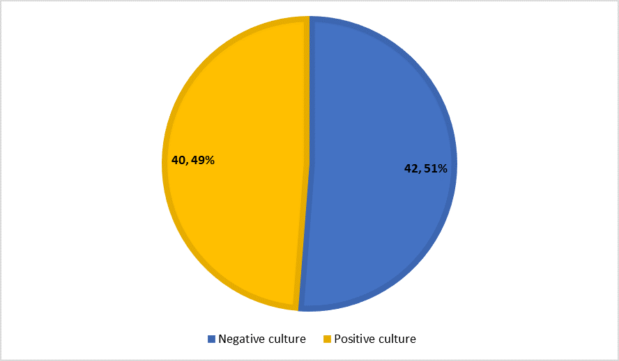 Figure 2 shows the prevalence by sample Type where the urine sample was the highest with 50 %, followed by other samples (45 %) and blood (5 %).