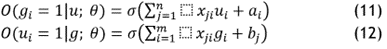 The two combined distributions equations (8) and (9) that follow are based on the energies functional of the RBM framework:
