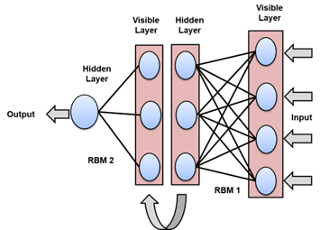 The hidden layer will transition to the next MH-BeliefNet + PSO input layer after initial training, classifying deep characteristics produced after training sessions. Figure 2 shows the DBN architecture.