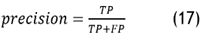 Precision is another commonly used performance metric in DL applications, including the prediction of diagnoses with COVID-19 in patients undergoing emergency treatment using a meta-heuristic optimization-based DL framework. By dividing the overall number of positive forecasts, the algorithm generated by the quantity of actual positive estimates, one can calculate the accuracy rate. Equation (17) is used to compute the precision.