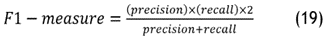 F1-measure is alternative frequently used performance measured in DL techniques, including the forecast of identifies with COVID-19 in patients experiencing emergency treatment employing a meta-heuristic optimization-based DL approach. In the setting of forecasting COVID-19, the F1-measure would indicate how well the meta-heuristic optimization-based DL methods can minimize false positives and false negatives while effectively identifying COVID-19 instances. Equation (19) is used to determine the f1-measure.