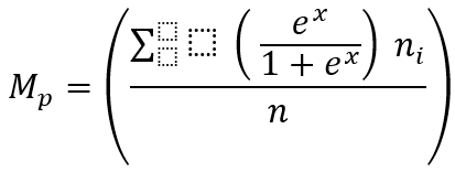 Donde, Mp corresponde a la media del valor máximo de los Delogit para la prueba, ex es el valor exponencial de cada logit, y n es la cantidad total de ítems de la prueba.