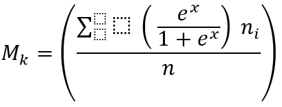 Donde, Mk corresponde a la media del valor Delogit de cada evaluado, ex es el valor exponencial de cada logit, y n es la cantidad total de ítems de la prueba.